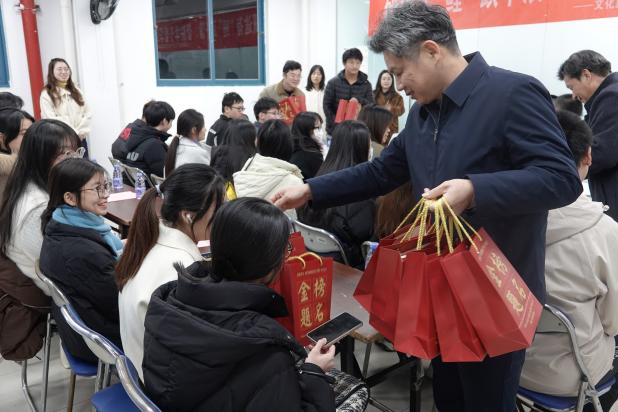 院领导为考研学生代表发放考研“加油包”,传递温暖与力量。学院为所有考研学生一一准备了“加油包”,以期激发考研学子的斗志与信心。考试当天,学院将设置应考帐篷点,提供保管手机、应急救助等服务,助力学生们成功抵达理想彼岸。