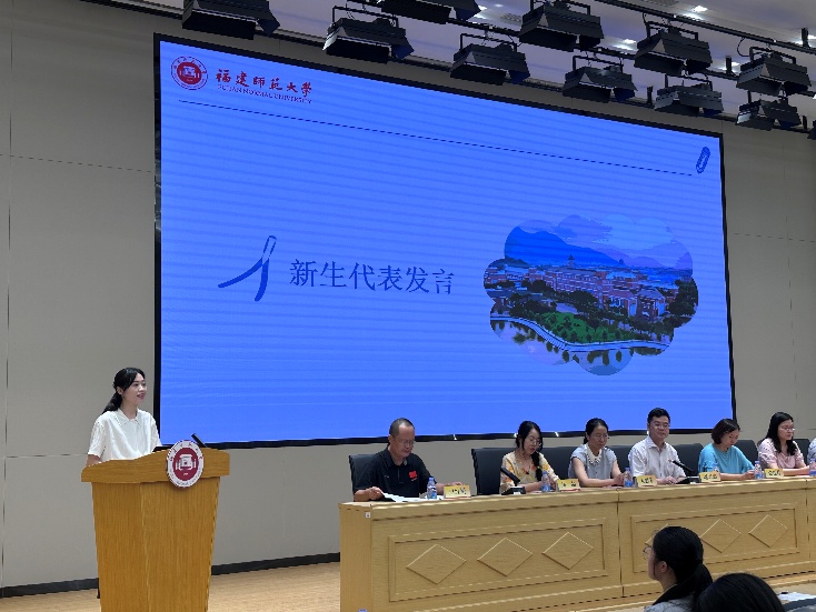 新生代表2025级MPA研究生郑琬婷在发言中表达了对重返校园的感恩与期待。她号召全体新生恪守“知明行笃,立诚致广”的校训,在未来的思想激荡与躬身实践中锤炼公共管理能力,凝聚服务社会的智慧,为国家和人民贡献青春力量。