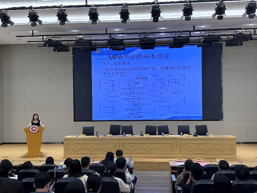 随后,MPA中心秘书曾婧婧老师为新生开展了入学教育,详细讲解了学校的规章制度、课程安排与学习要求,帮助同学们更快融入校园生活。最后的答疑环节中,同学们积极提问,老师耐心解答,现场互动热烈。
