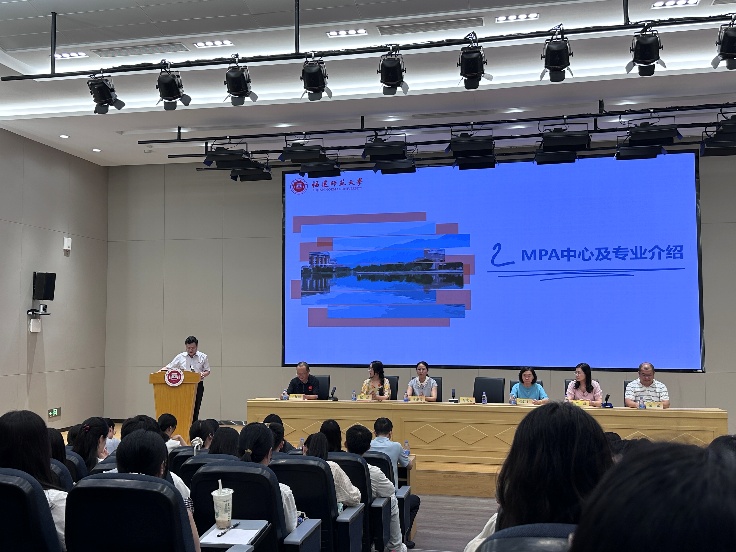 随后,谢宏忠院长围绕MPA中心的发展历程、师资队伍、教学资源与专业特色作了系统介绍。他特别指出,中心拥有一支深耕学术、兼备实务经验的师资团队,已形成管理学、经济学、政治学等多学科交叉的教学体系,并依托学校人文社科深厚底蕴和“冲刺双一流”的发展机遇,为同学们提供高质量的学习平台和学术支持。