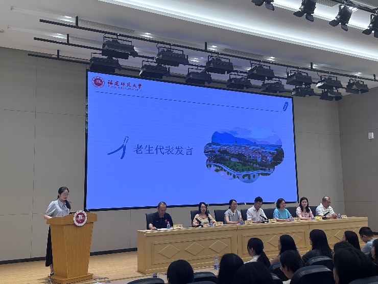 老生代表2024级MPA研究生林诗颖结合自身经历,分享了在学院的成长与收获。她以参加“文化中国”比赛和公共管理案例大赛为例,鼓励学弟学妹主动学习、积极实践、平衡生活,在挑战中拓宽生命的维度。