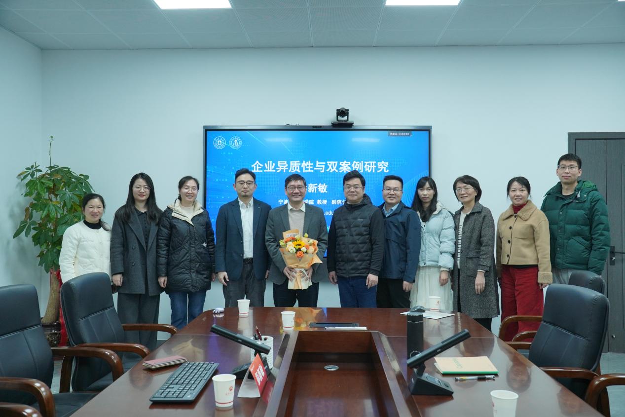 2026年1月20日下午,宁波大学商学院副院长、博士生导师彭新敏教授应我院邀请,作题为“企业异质性与双案例研究”学术讲座。讲座由院长谢宏忠教授主持,我院师生踊跃参与,现场学术氛围浓厚。