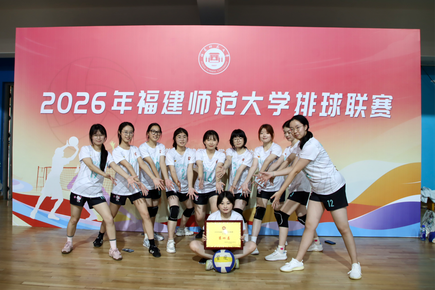 4月12日,2026年福建师范大学排球联赛在旗山校区体训馆顺利闭幕。在本届比赛中,我院女排在学院领导关心和队员顽强拼搏下,历经多轮激烈角逐,最终荣获赛事第四名,创造了我院女子排球队参加校级联赛以来的历史最佳成绩。